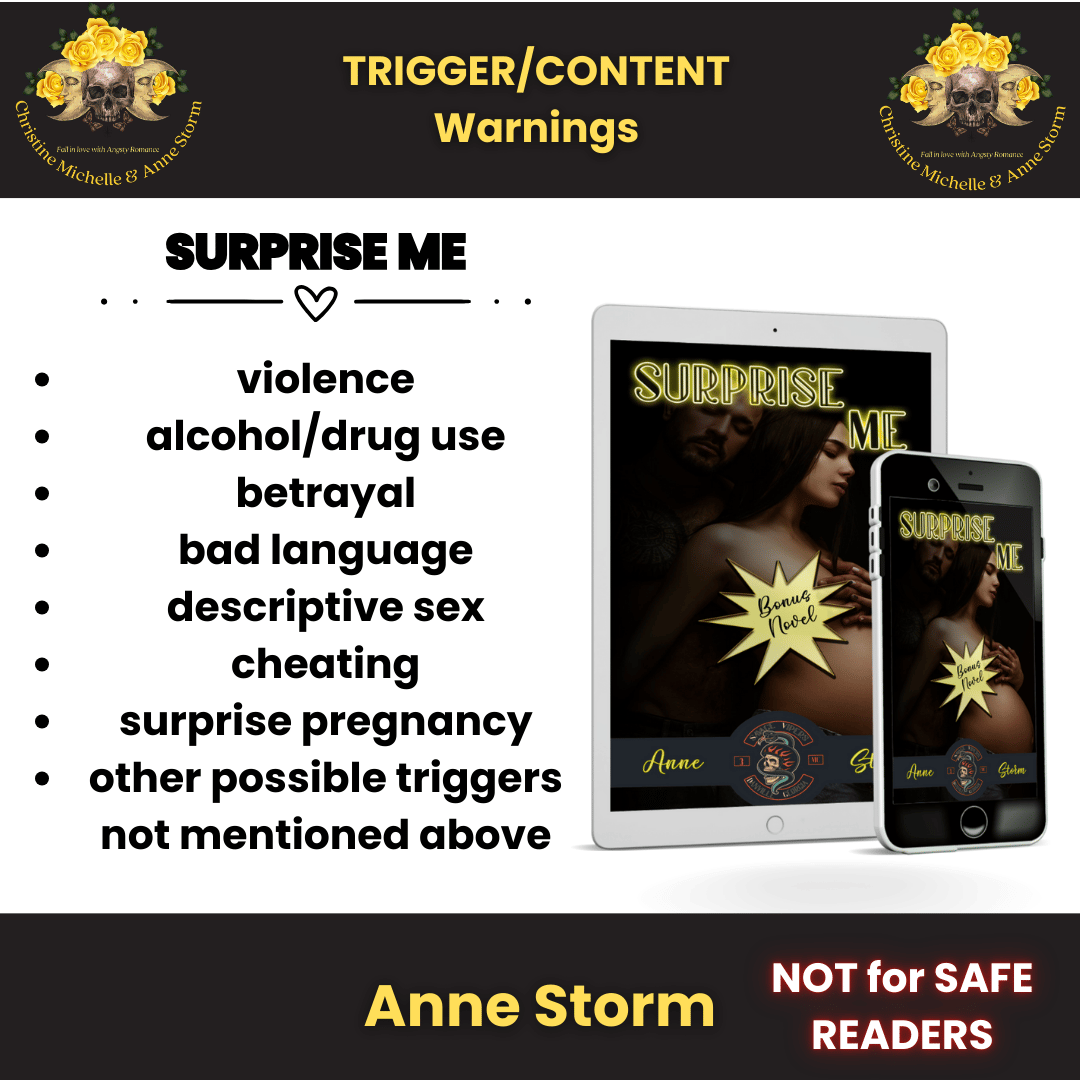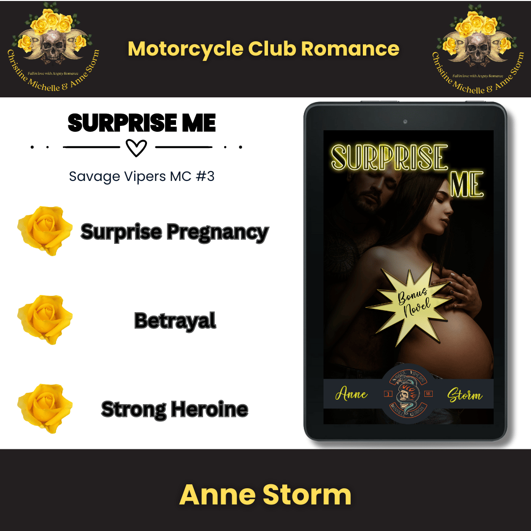 *Note: This bonus book dives into the past of the MC President's life, when Tripp was just a prospect. The timing of the storyline in this book is important to things that will happen in Book 4, Baby Me (which focuses on Tripp's life in the present timeline). While you can dive into book 4 without reading about his past with Kim and June, you will get much more out of that book if you read Surprise Me first.